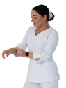 Elegant Roma medical Scrub Top from Apronèe! Comfortable, functional, and stylish. Features a V-neck, 3/4 sleeves, and subtle pleats. Made with Premium cotton fabric. Ideal for medical, cosmetic, and beauty professionals. Available in many colors and sizes.