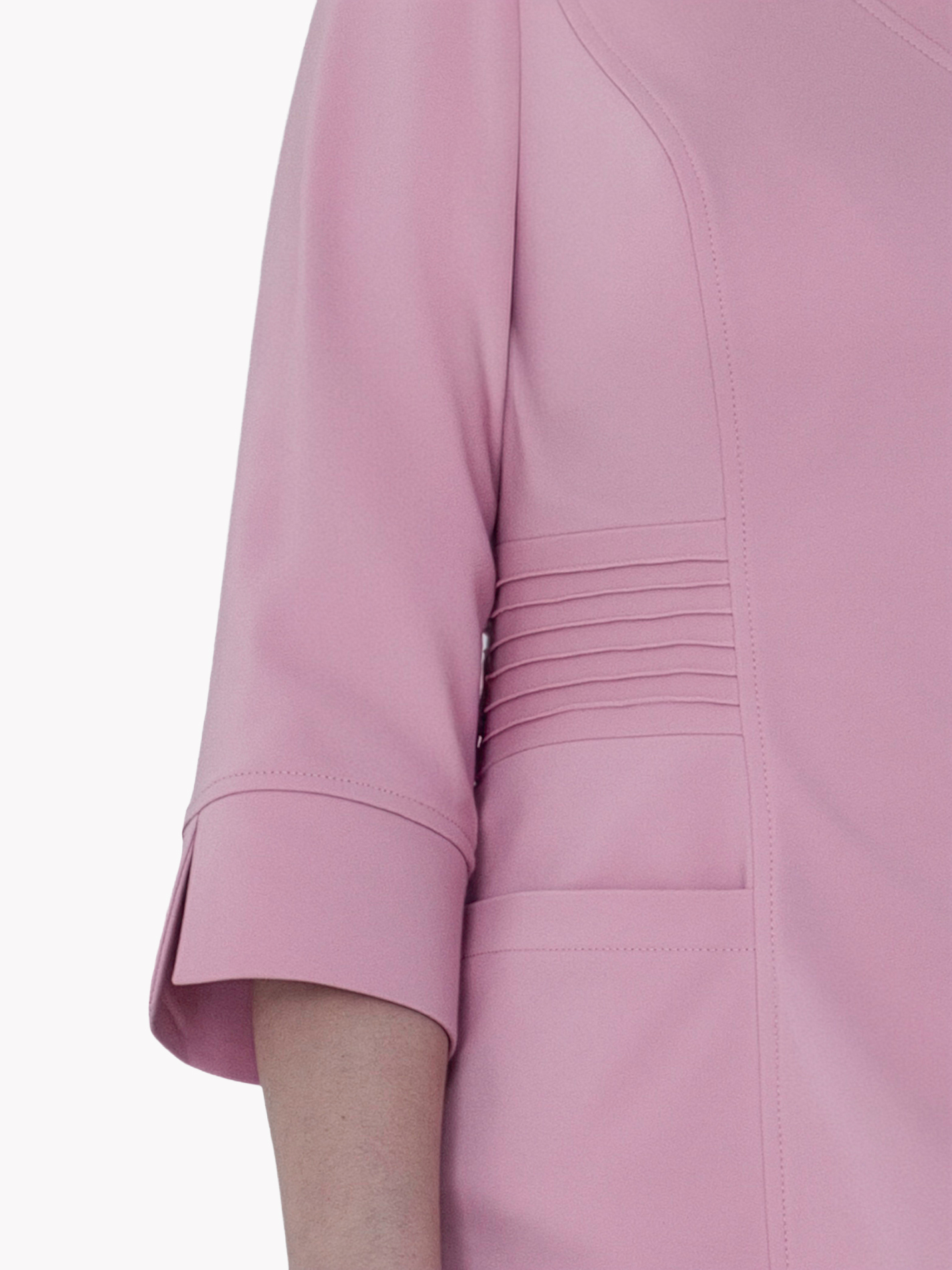 Elegancki dekolt w kształcie litery V dodaje bluzie dostojności i klasy, a finezyjne mankiety oraz rękaw o długości 3/4 wprowadzają modowy akcent, który wyróżnia ją na tle klasycznych uniformów. Dzięki temu wyglądasz profesjonalnie i stylowo, nie rezygnując z wygody. Boczne rozcięcia to nie tylko element stylistyczny, ale przede wszystkim praktyczne rozwiązanie, które zapewnia swobodę ruchów, kluczową w dynamicznym środowisku pracy.