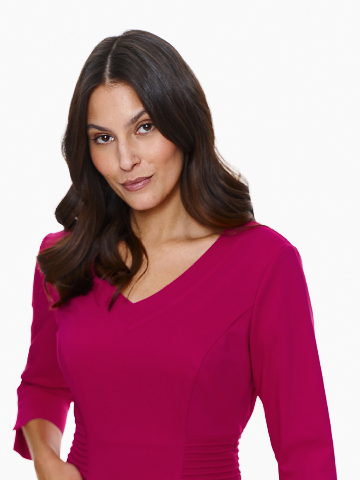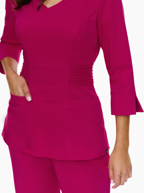 Elegancki dekolt w kształcie litery V, finezyjne mankiety oraz rękaw o długości 3/4 wyróżniają bluzę na tle klasycznych Uniform-Scrubsów.