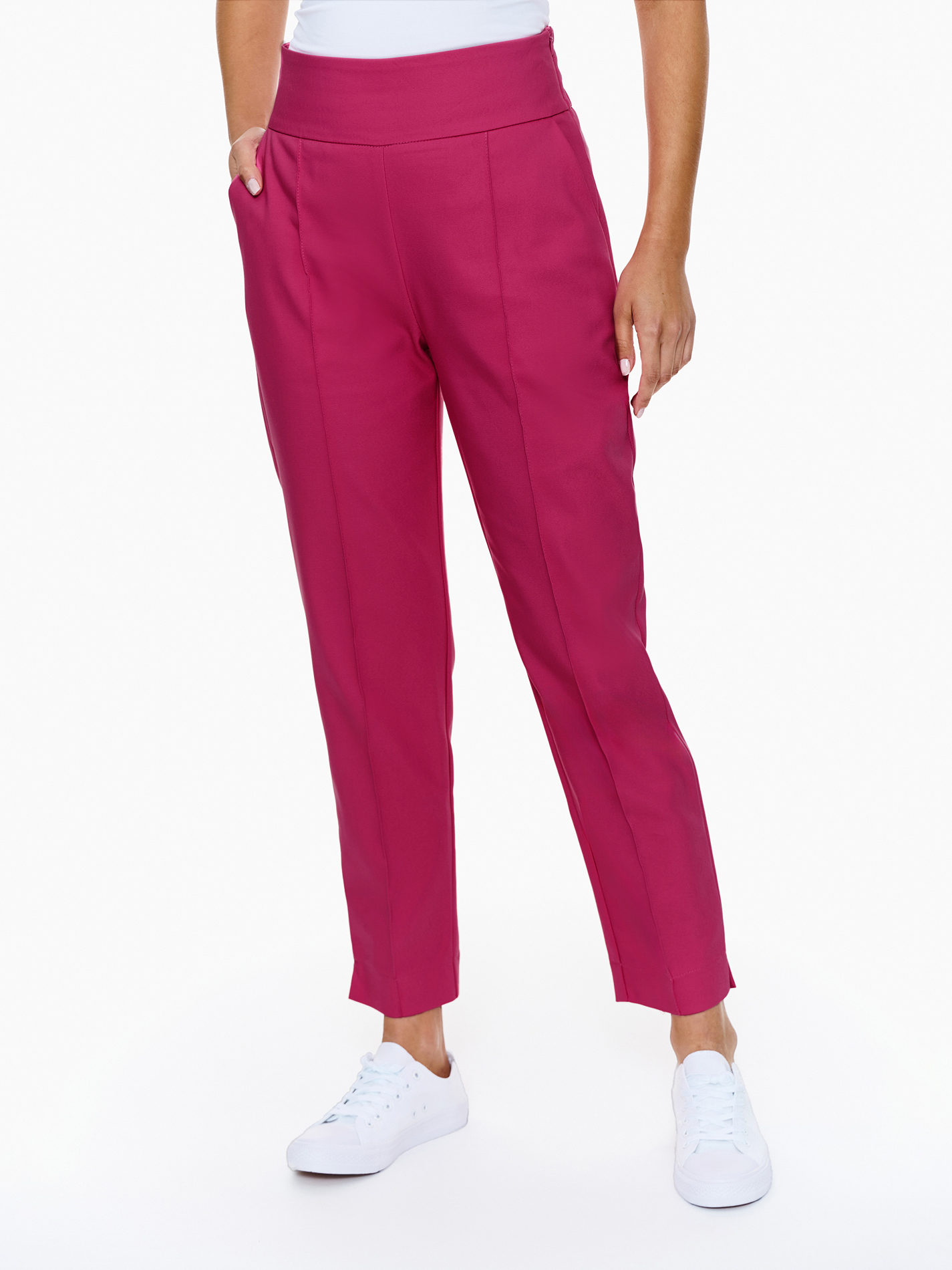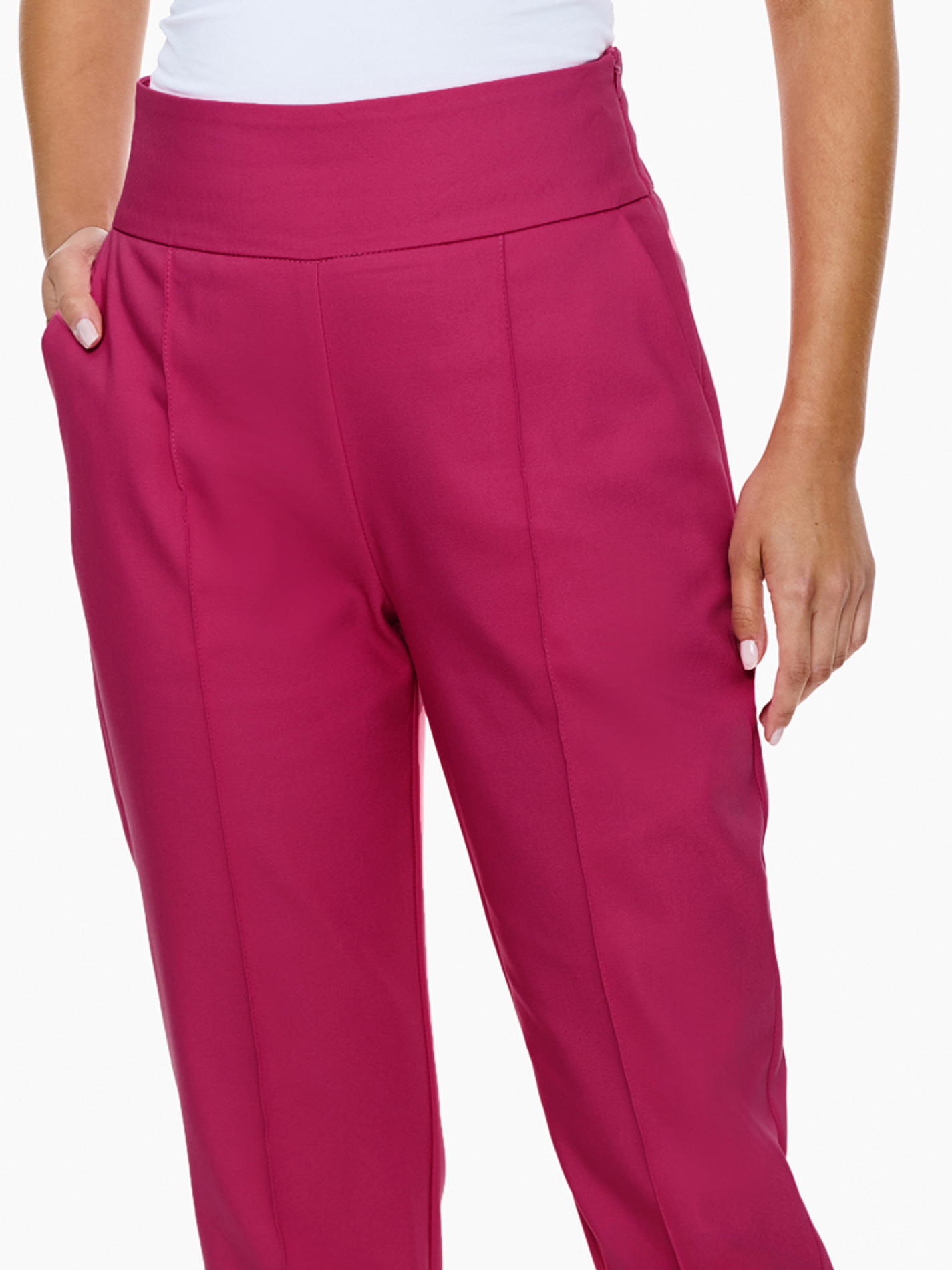 Spodnie Genova to idealny wybór dla tych, którzy chcą wyrazić swoją indywidualność, nie rezygnując z profesjonalizmu. Dostępne są w bogatej gamie kolorów, co pozwala na stworzenie wielu stylowych zestawów: purpurowym, różowym, białym, czarnym, beżowym, brązowym, morskim, błękitnym, zielonym miętowym.